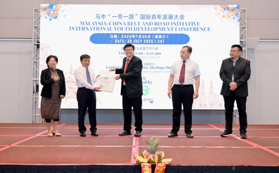 在论坛专家洞见环节,李经理作为主旨发言人,作了题为《加强“一带一路”建设 推动中马经贸合作不断发展》的专题报告。李经理在发言中系统阐述了“一带一路”倡议的建设内容与显著成效,深入剖析了当前中马经贸合作的基本格局与关键领域,着重强调了双边合作的互补性与潜力,针对性地提出了深化中马经贸务实合作的具体建议,并呼吁两国青年群体积极贡献力量。李经理的发言内容详实、见解深刻,赢得了在场参会代表的热烈掌声和中马双方参会人员的高度认同。论坛期间,拉曼大学钟志强副董事长向李经理颁发了参会专家聘书。